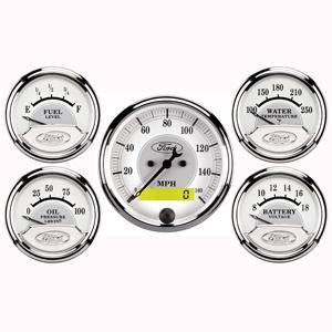 Crisp white OEM-style lettering, Ford logo, and bright anodized Super Bezels make the Ford Racing Series a stylish fit. Choose from short-sweep electric mechanical or full-sweep stepper gauge movements.